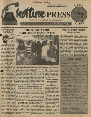 Hotline Press Newspaper- August 1988 Vol 5 No 2