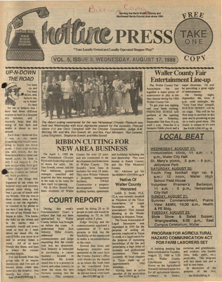 Hotline Press Newspaper- August 1988 Vol 5 No 3