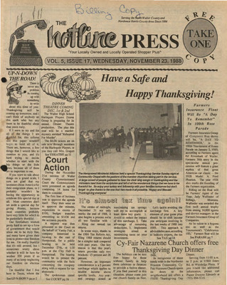 Hotline Press Newspaper- November 1988 Vol 5 No 17
