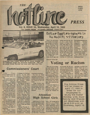 Hotline Press Newspaper- April 1992 Vol 8 No 34