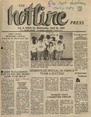 Hotline Press Newspaper- April 1992 Vol 8 No 35