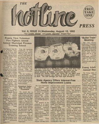 Hotline Press Newspaper- August 1992 Vol 8 No 51